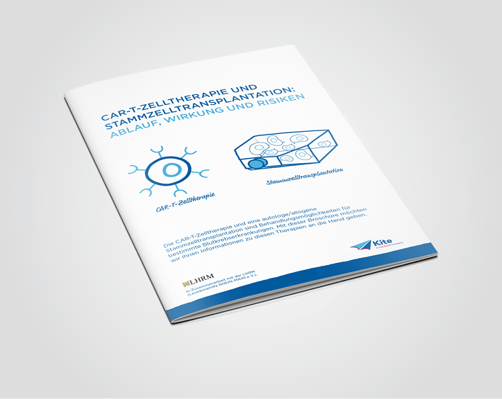 Eine Broschüre zum Ablauf und Unterschieden zwischen der CAR-T-Zelltherapie und den verschiedenen Arten der Stammzelltransplantation.