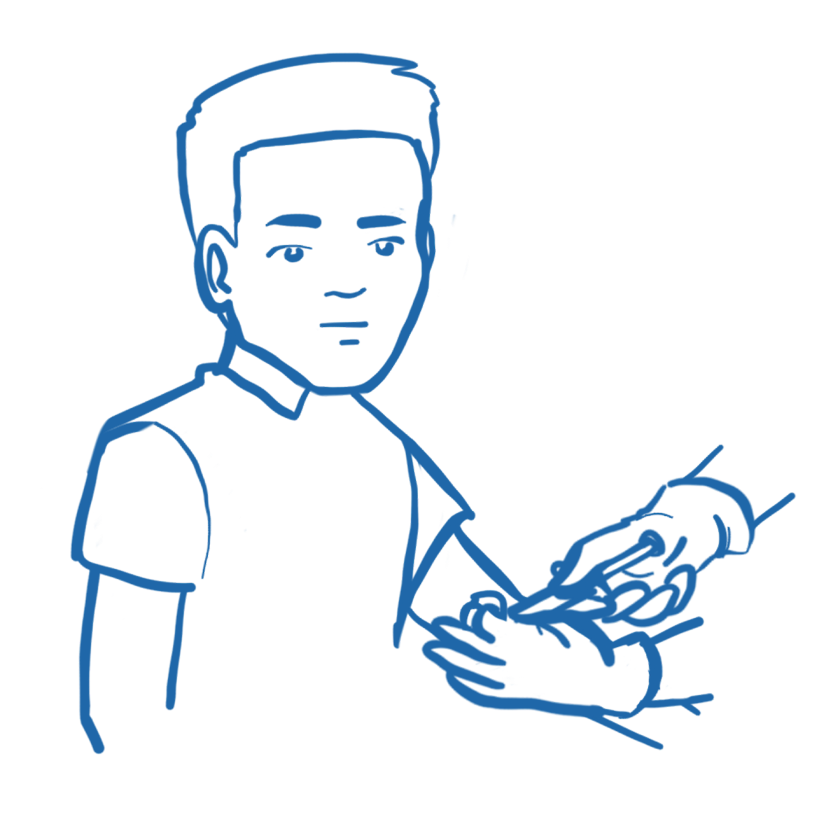 Illustration eines Patienten und eines älteren Angehörigen, welcher von hinten die Hand auf die Schulter legt.